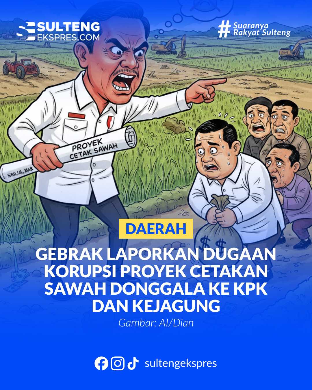 Jakarta, Sultengekspres.com – Lembaga Swadaya Masyarakat Gerakan Bersama Rakyat Antikorupsi (GEBRAK) menyatakan akan melaporkan dugaan tindak pidana korupsi dalam pelaksanaan proyek Cetakan Sawah di Kabupaten Donggala, Sulawesi Tengah. Laporan tersebut akan diserahkan ke Komisi Pemberantasan Korupsi (KPK) dan Kejaksaan Agung Republik Indonesia pada Senin, 3 November 2025.