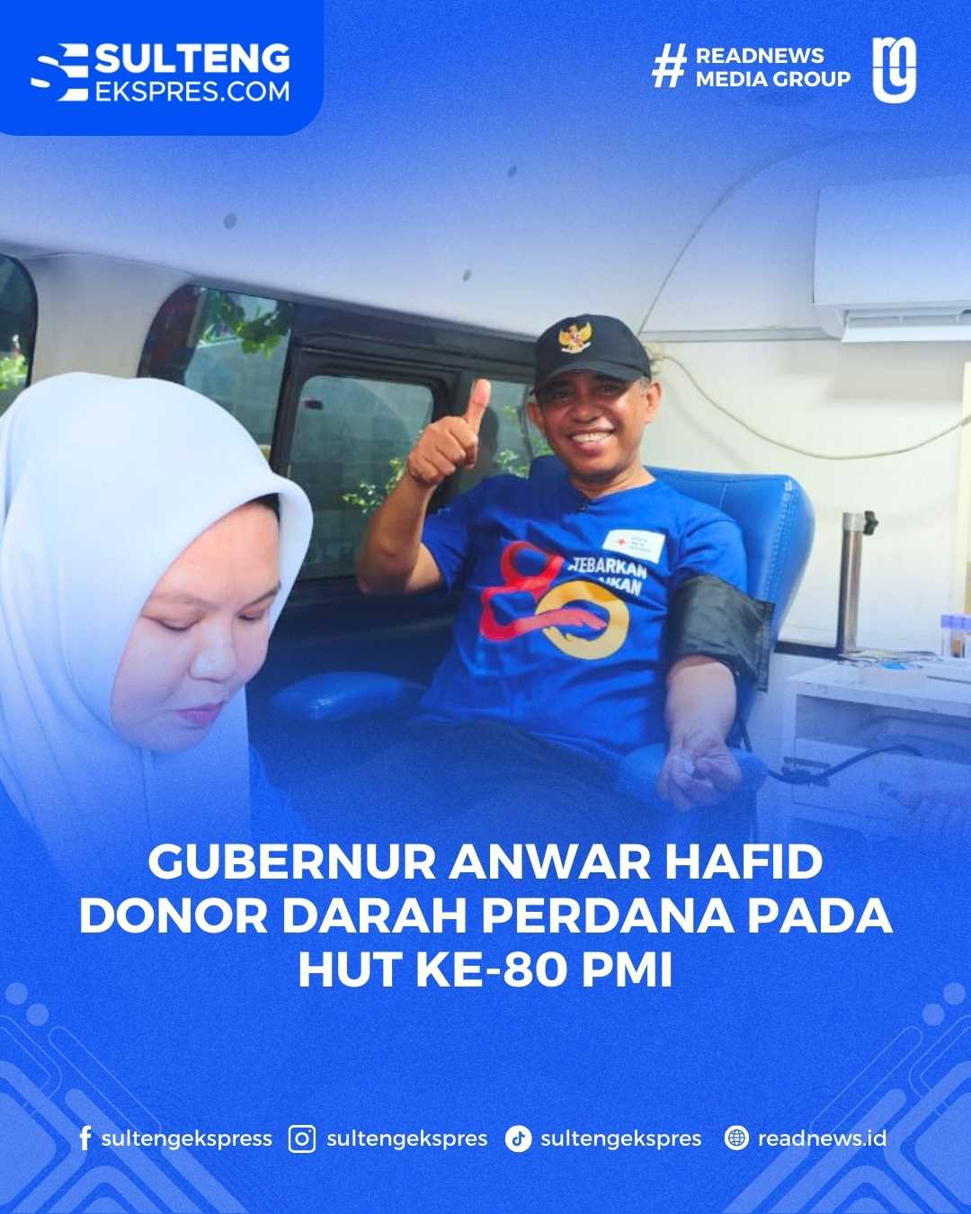 Palu, Sultengekspres.com – Gubernur Sulawesi Tengah, H. Anwar Hafid, melakukan donor darah untuk pertama kalinya pada peringatan Hari Ulang Tahun (HUT) ke-80 Palang Merah Indonesia (PMI) Provinsi Sulawesi Tengah, Minggu (28/9).