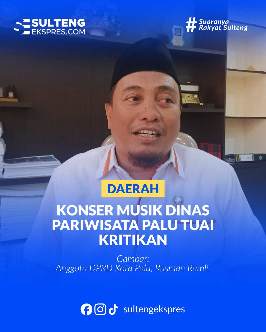 Palu, Sultengekspres.com – Rencana Dinas Pariwisata Kota Palu yang akan menggelar konser musik dengan anggaran mencapai Rp 3 miliar lebih, seperti di lansir salah satu media online kota palu, mendapat tanggapan di Ari anggota Dewan Perwakilan Rakyat Daerah (DPRD) Kota Palu, Rusman Ramli.