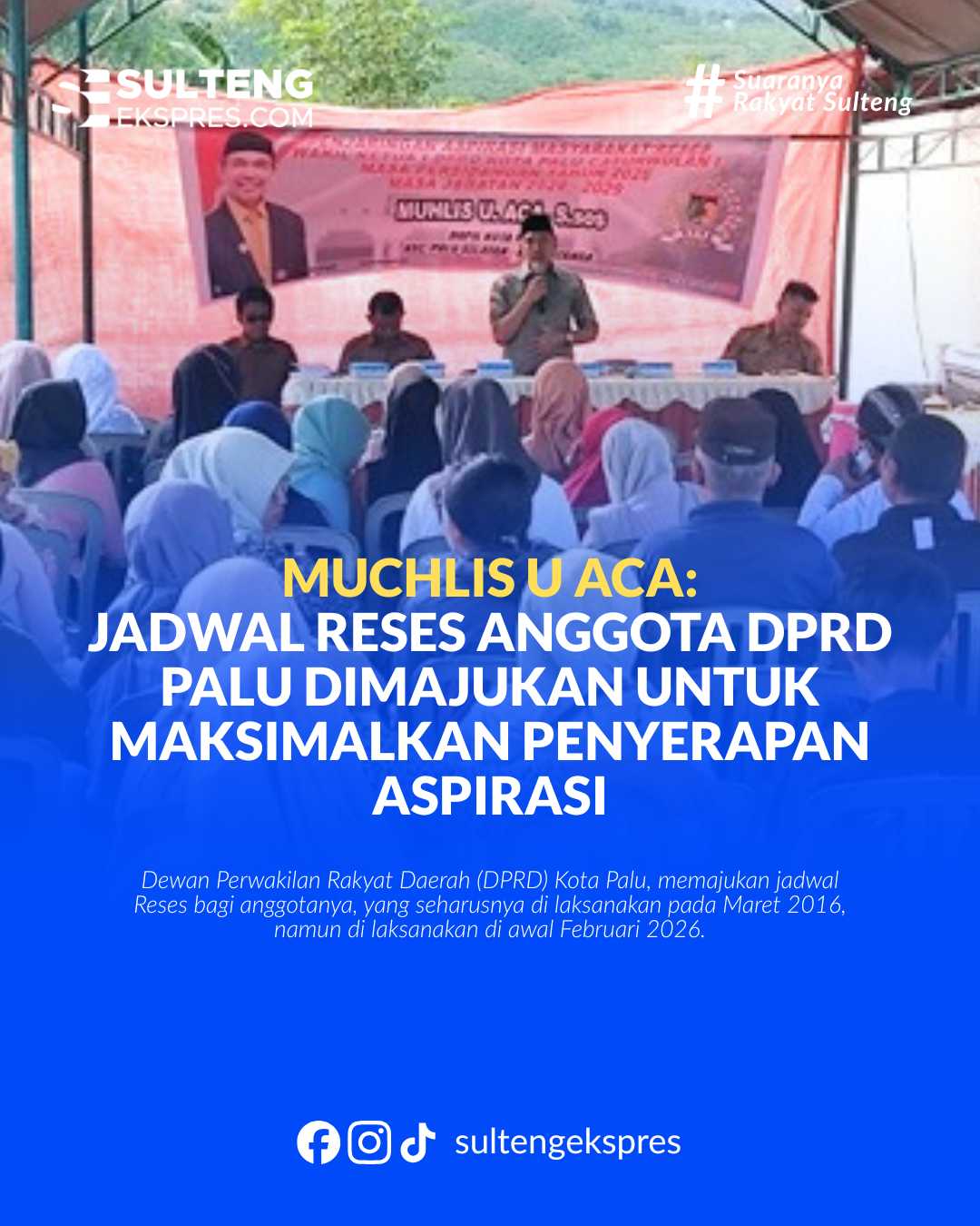 Palu, Sultengekspres.com – Dewan Perwakilan Rakyat Daerah (DPRD) Kota Palu, memajukan jadwal Reses bagi anggotanya, yang seharusnya di laksanakan pada Maret 2016, namun di laksanakan di awal Februari 2026.